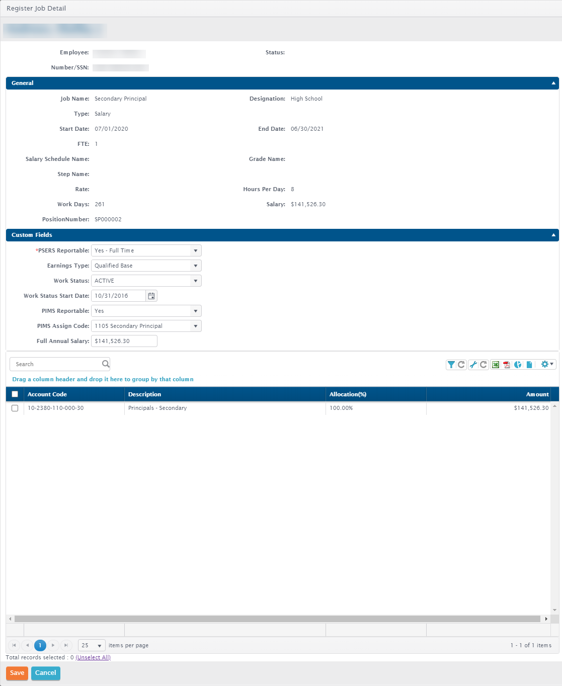 When you're finished reviewing the job detail, click Cancel to return to the Register Details window.